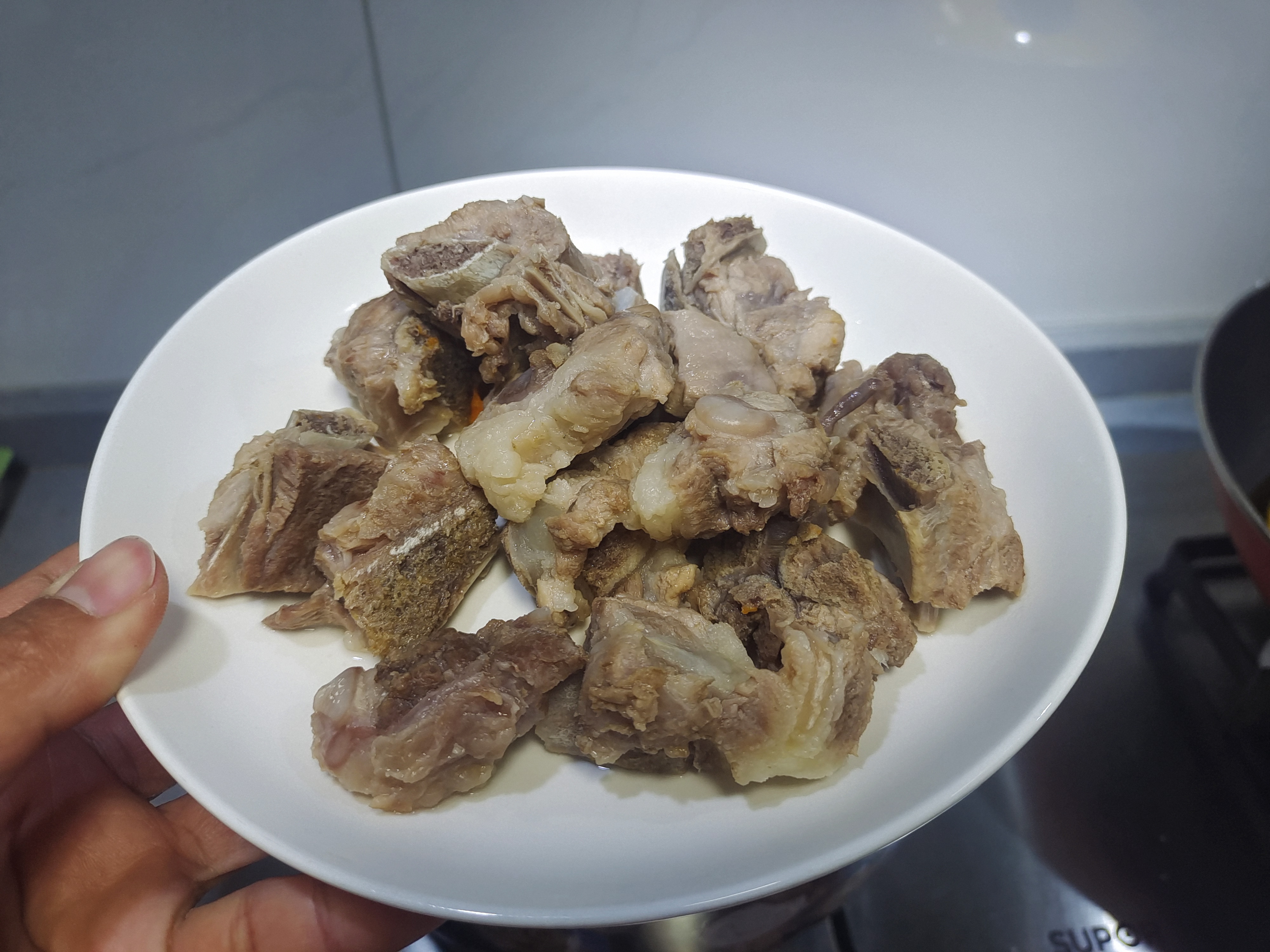 自己种的胡萝卜就是好吃,搭配排骨煲出来的汤非常的清甜好喝。汤汁很浓郁,煲好之后,我们排骨还可以拿出来蘸料吃,因为孩子说这样更好吃,不然没味道。
