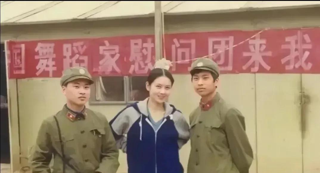 1985年,杨丽萍去老山前线慰问演出, 还和战士们合影了! 原来,年轻的杨丽萍一点都不瘦,脸蛋圆润饱满,很接地气的样子!