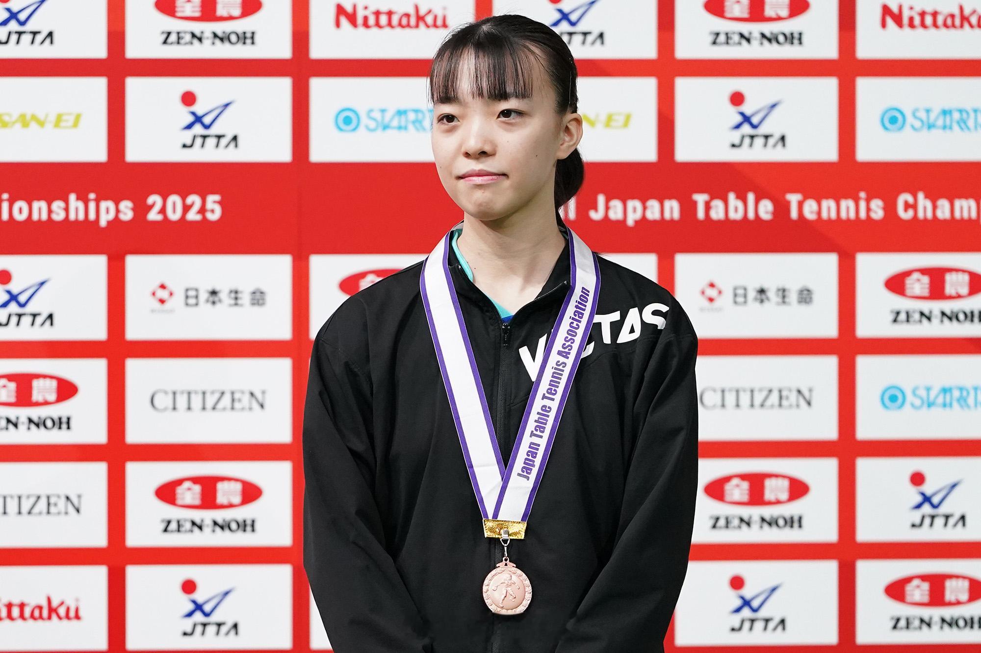 2025全日本乒乓球锦标赛 张本美和实现青少年女子组三连冠。在决赛里,张本美和以3比1(10-12、11-9、11-7、13-11)击败面手凛夺冠。