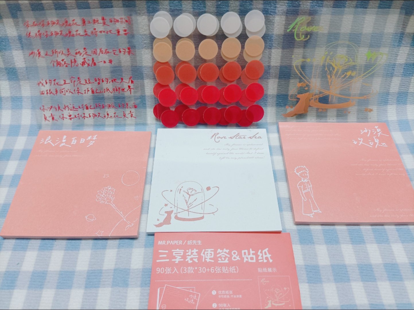 买了一包纸先生星球奇遇系列的三享便签,蓝色的没了只好买水红色的了。