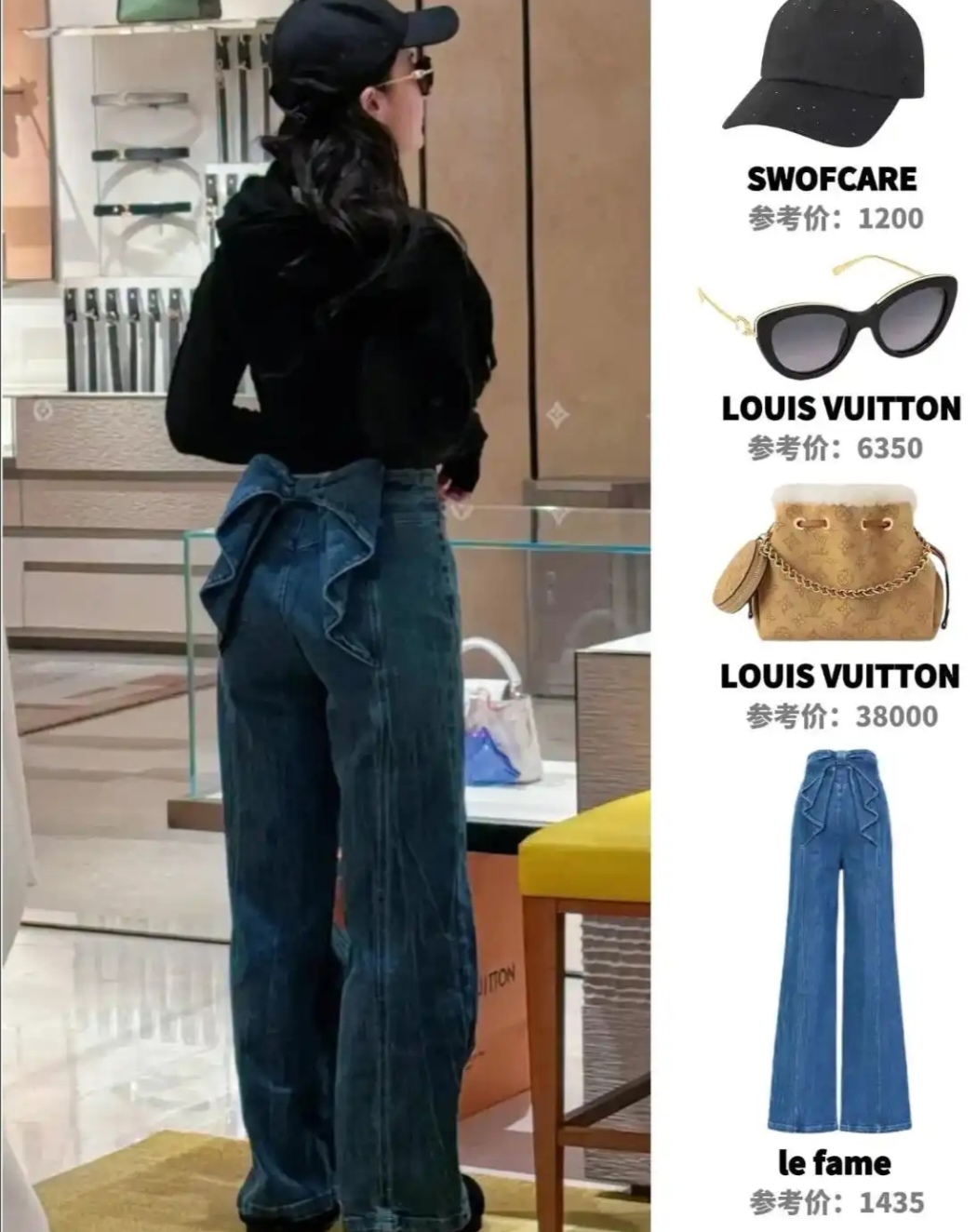 刘亦菲并不是这这个品牌的代言人,之前她穿这个牌子的带蝴蝶结后腰的牛仔裤,把这条裤子带火了。