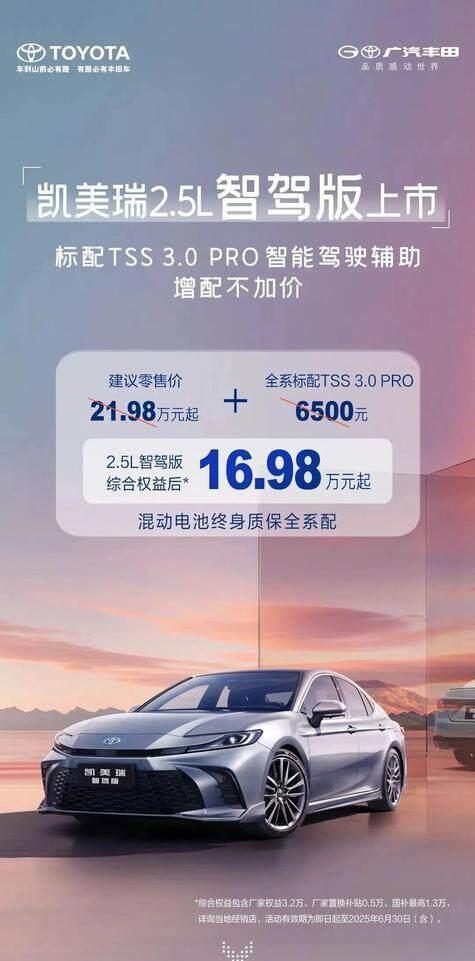 这不,广汽丰田憋了个大招,4月9号,凯美瑞智驾版正式上市,起售价16.98万起,还送5万大礼包!