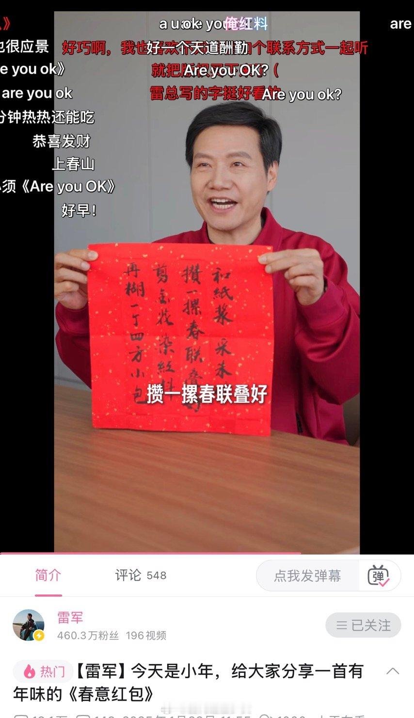 雷军早就压中了春晚节目 ,雷军你这是不是偷偷看了春晚节目单啊?这预测能力也太强了吧!《春意红包》这首歌果然火了,雷总真是预言家啊!