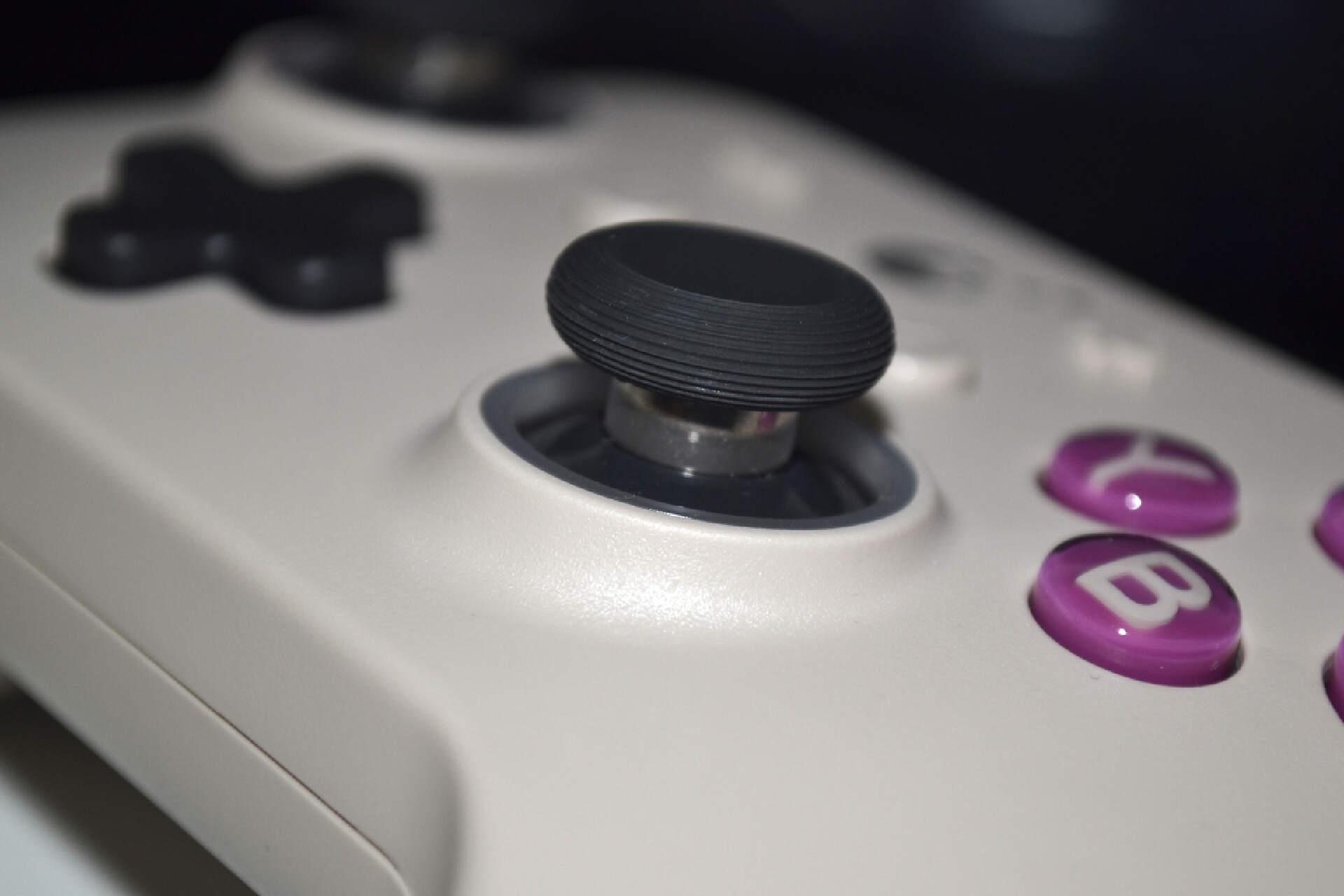 在细节设计上,谷粒金刚3Pro游戏手柄展现了匠心独运的巧思。手柄的摇杆帽采用了谷粒专利的“金刚圈”设计,不仅触感细腻,有效防止打滑,游戏过程中控制角色移动时更加顺滑无阻。