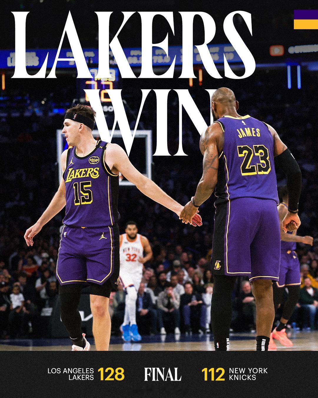 【湖人128比112尼克斯】 “we want bronny”和“beat LA”一样,要成为主队球迷在湖人做客时呼喊的口号了。