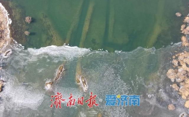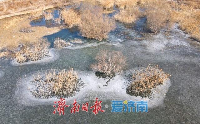 2月7日,受强冷空气影响,济南气温骤降,户外温度最低已达-12℃,迎来今年气温最低值。受此影响,济南卧虎山水库也出现近年来首次封冻现象,水库最东侧的百余平方米浅滩水域结冰,冰面如镜,冰花晶莹剔透,呈现出了另一番意境。