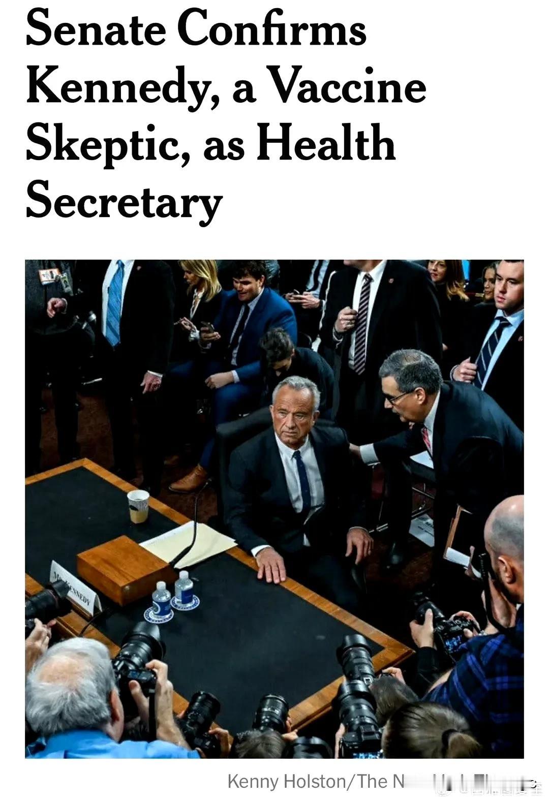 参议院52:48通过Kennedy的卫生部长提名,McConnell又投了反对票,也 是共和党唯一反对票,给出的理由:小时候有脊髓灰质炎,疫苗救过自己、也救过无数人,Kennedy反对疫苗、不讲科学,不能支持。 82岁的McConnell是参议院共和党领袖,在参议院表决特朗普总统提名人选中,不止一次投了反对票。