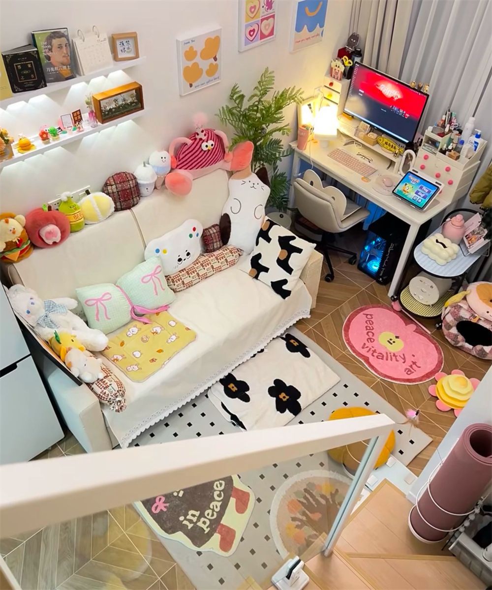 家里面积有限,但好在层高足有3米2,这位姑娘得以利用起这层高的优势,切分出上下层。