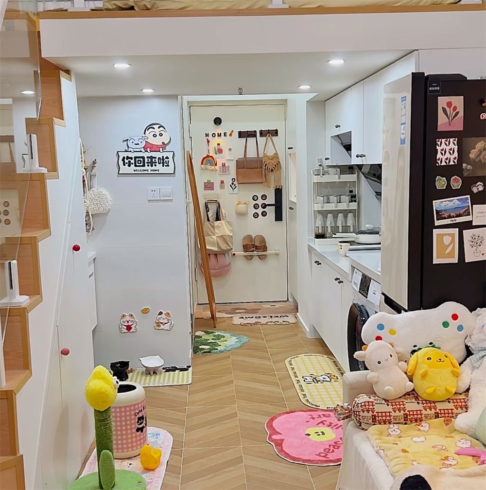这位四川姑娘,在前不久买下并装修好了这间19㎡的蜗居,面积是小了点,但她却利用3米2的层高切分出了上下层,容纳下了一个家该有的全部功能。