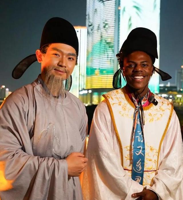 深圳旅行时,他身着唐装大褂走进古色古香的中式庭院,好奇地打量着四周,摸摸古老的石狮,瞅瞅屋檐下的风铃,被眼前的景象深深震撼到,兴奋地对着直播镜头大喊:“Oh my god!这就是中国古代的建筑吗?太不可思议了!”那一刻,仿佛时间穿越,他成了从现代闯入古代的使者。