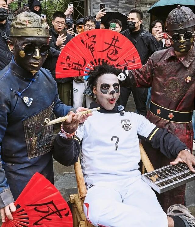 随后,身着憨态可掬熊猫装的他,来到了自清朝就留存至今的成都“宽窄巷子”。