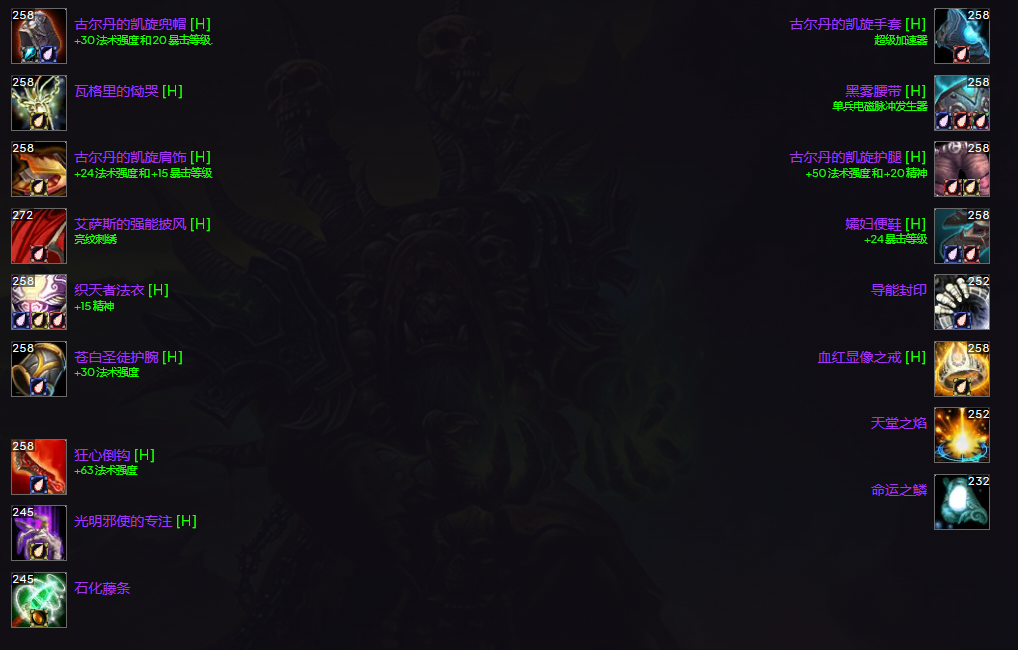 肩部,“古尔丹的凯旋肩饰”当仁不让。它不仅增加了不素的暴击,还赋予了强大的法术强度。