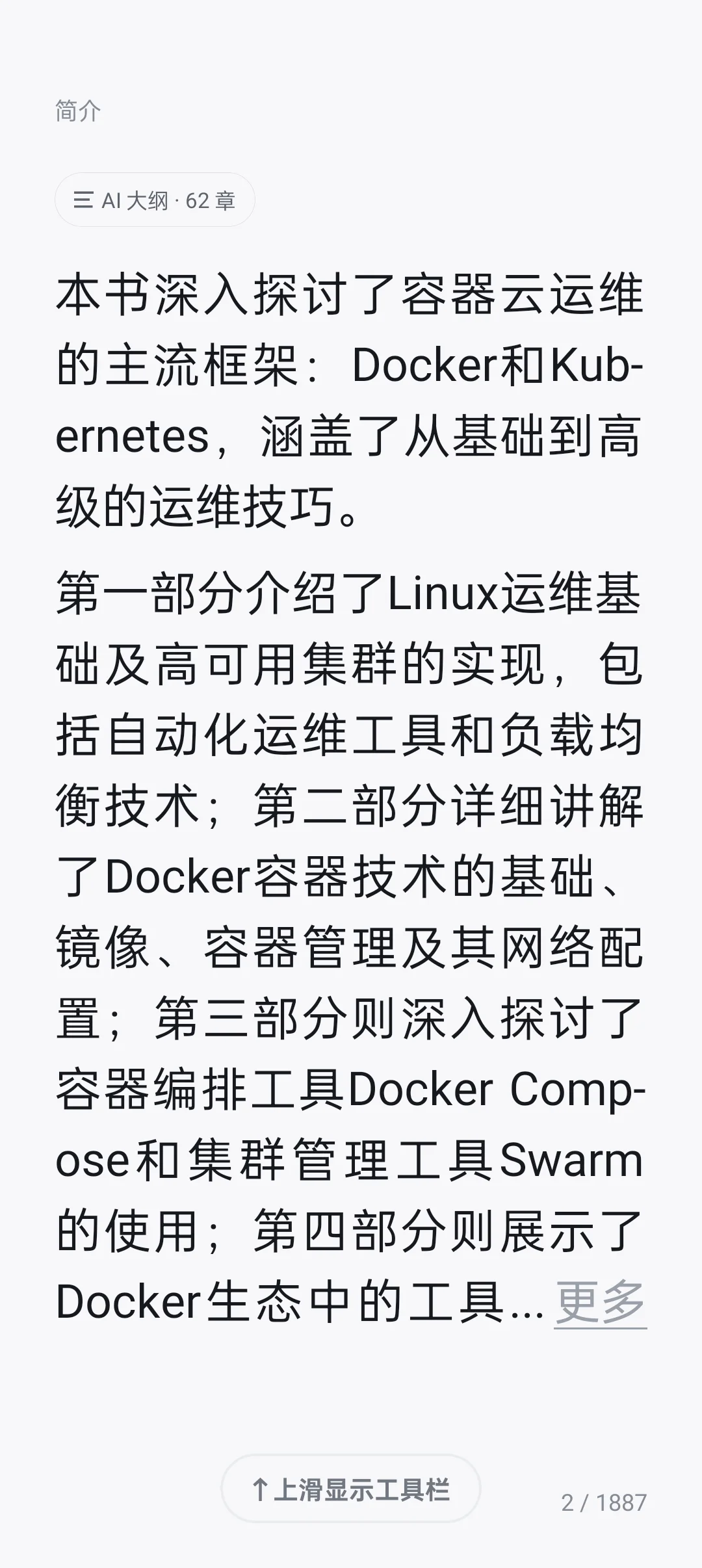 第一部分(第1~2章)介绍了在Linux系统中传统服务器运维的基础知识以及集群管理工具;第二部分(第3~7章)讲解了以Docker为主的容器引擎的基本知识与原理,并介绍了容器技术在DevOps中的实际应用场景;第三部分(第8~9章)详细讲解了基于Kubernetes的容器云集群运维技巧。全书几乎囊括了容器云主流的运维开发生态,详细讲解了基于容器云的集群运维解决方案。