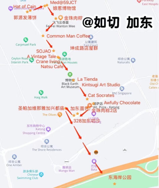 今天来分享充满娘惹特色的小资街道-如切路,一路可以徒步到东海岸公园🏝️,如切路是土生华人的聚集地,这里多巴胺色彩的排屋是标志性建筑,宝藏街区还有各种咖啡馆,餐馆和小店,还有有名的Jellycat店哦