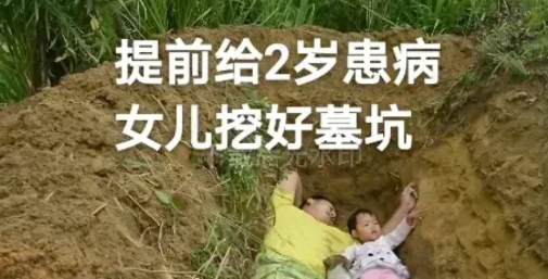 他亲自给2岁女儿提前挖好墓坑,因担心女儿长眠于此心里害怕,他每天陪女儿在墓坑玩耍,让女儿尽早适应。 他就是张利勇,2岁女儿身患癌症,为给女儿看病已倾其所有,因家境贫寒再也无力承担高昂的治疗费用,才做出了令人心碎的选择 深知女儿随时可能离开,他珍惜与女儿相处的每一秒钟,尽管心中充满不舍与悲痛,却仍尽力让女儿感受到爱护与陪伴。 看到图片上女孩坐在墓坑里,那双清澈的眼睛好像对这个世界还没看够。 她甚至还不知道什么是死亡,什么是父爱。庆幸的是她也不知道什么是民政,什么是红十字会 孩子,我敢跟你打赌,你那傻爹是瞎折腾,这坑根本用不上…