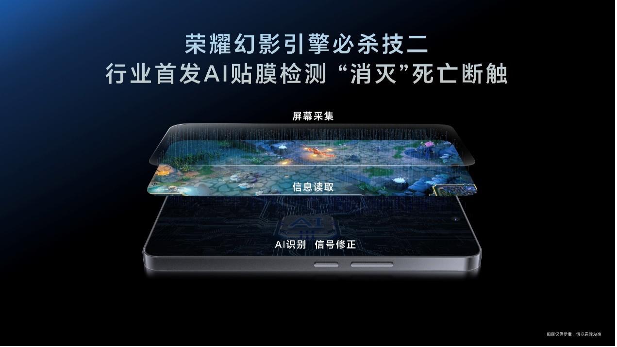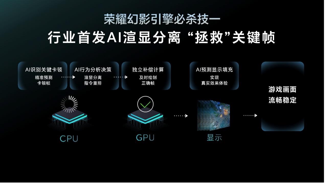 荣耀 GT 首发自研荣耀幻影引擎,借由 AI 渲显分离、贴膜检测与功耗自适应三项业界首创技术,直击游戏卡顿、断触及续航难题,打造极致稳定的游戏环境。AI 渲显分离技术精准预判卡顿帧,经异步计算与独立补偿,关键帧掉帧显著改善,抖动率低至 0.1%,满帧稳帧体验绝佳。AI 贴膜检测技术实时处理触控信号,有效规避钢化膜引发的断触,确保操控顺滑。AI 功耗自适应技术运用 AI 智能调度,精准管控游戏场景功耗,消除盲区,助力玩家持久畅玩。
