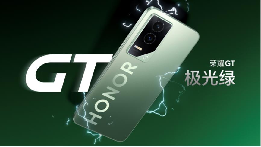 外观上,荣耀 GT 极具特色。“刀锋之眼” 镜头模组采超跑头灯灵感与二次氧化工艺,铭刻 “GT” 图腾,性能韵味十足。飞线设计起于镜头贯穿机身,融合立体精雕细纹工艺,塑造简约精致且充满力量速度美感的外观。提供 “冰晶白”“幻影黑”“极光绿” 三色可选,极光绿版传承荣耀 30 系列经典 HONOR “大 LOGO”,契合年轻用户时尚前卫审美,展现独特个性魅力。