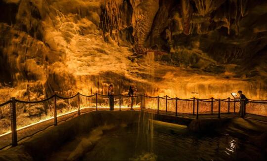 ▫悬崖洞穴(The Cavern):220米地下溶洞!复刻马来西亚姆鲁洞穴,钟乳石+暗河+爬行类动物,探险感拉满!