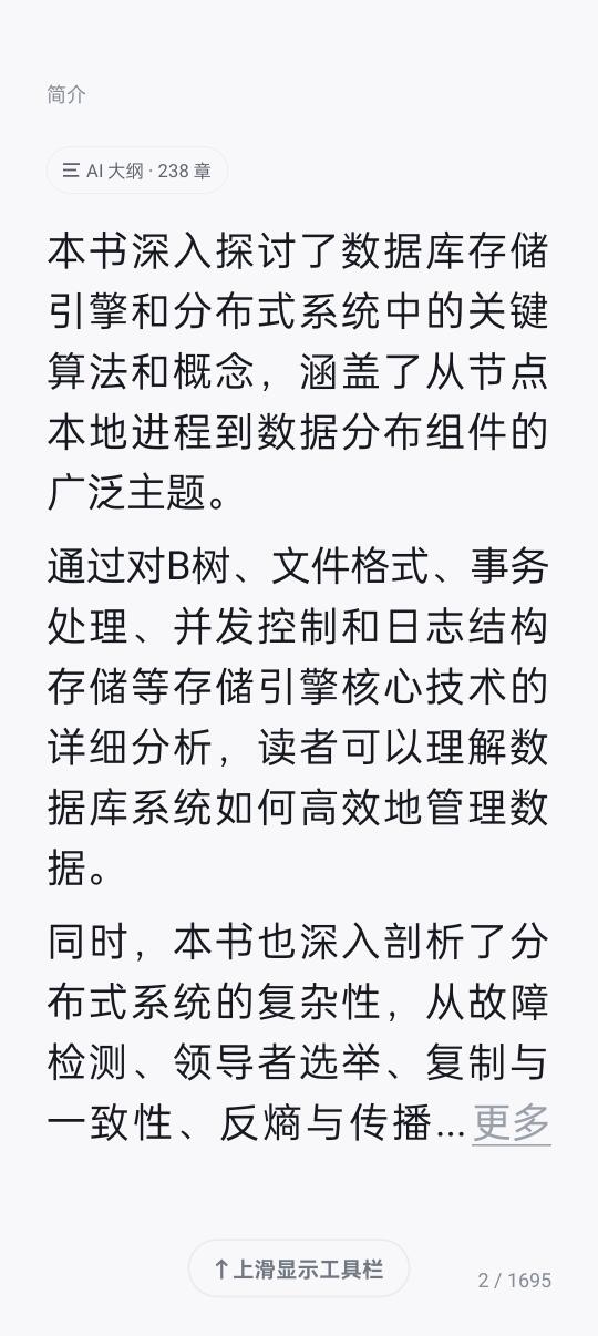 这本书既不是关于关系型数据库的书,也不是关于NoSQL的书,而是关于在各种数据库系统中使用的算法和概念的书,重点是存储引擎和负责数据分布的组件。 第一部分讨论节点本地的进程,并着重于存储引擎这个数据库系统的核心组件以及最重要的一个特有元素。 第二部分讨论负责数据分布的子系统和组件,介绍如何将多个节点组织到一个数据库集群中。