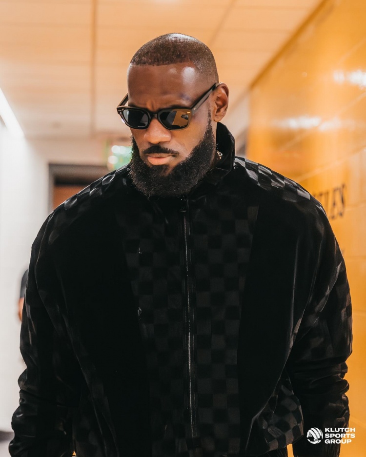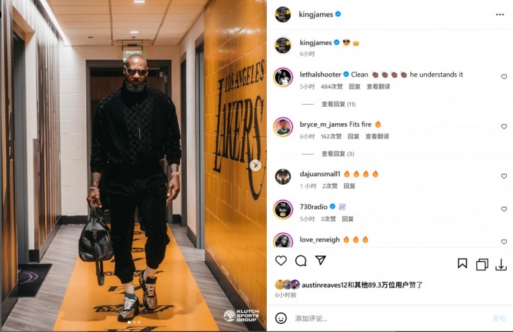 泰酷辣!詹姆斯INS晒穿搭全黑格子运动装+墨镜+空军