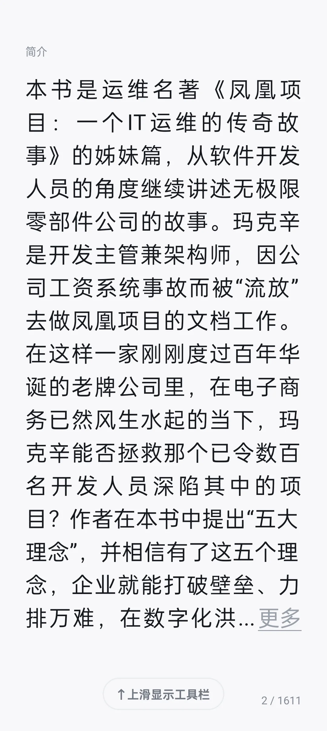 本书是运维名著《凤凰项目:一个IT运维的传奇故事》的姊妹篇,从软件开发人员的角度继续讲述无极限零部件公司的故事。 玛克辛是开发主管兼架构师,因公司工资系统事故而被“流放”去做凤凰项目的文档工作。在这样一家刚刚度过百年华诞的老牌公司里,在电子商务已然风生水起的当下,玛克辛能否拯救那个已令数百名开发人员深陷其中的项目? 作者在本书中提出“五大理念”,并相信有了这五个理念,企业就能打破壁垒、力排万难,在数字化洪流中力挽狂澜。