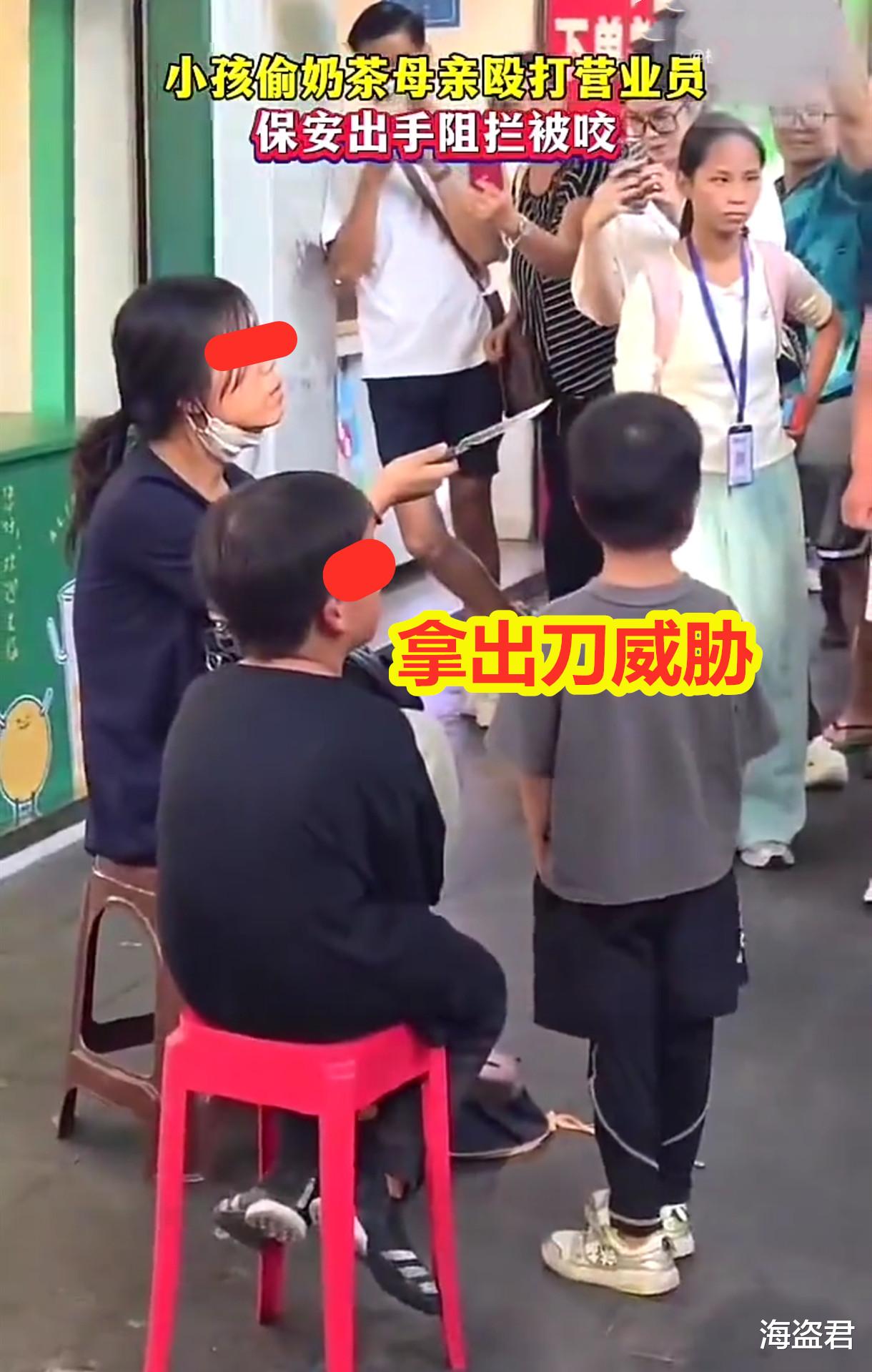 广东广州,2个小男孩偷奶茶被发现,妈妈不道歉还殴打店员,保安前来劝阻也被咬,宝妈离开被拦后甚至还拿出刀威胁。