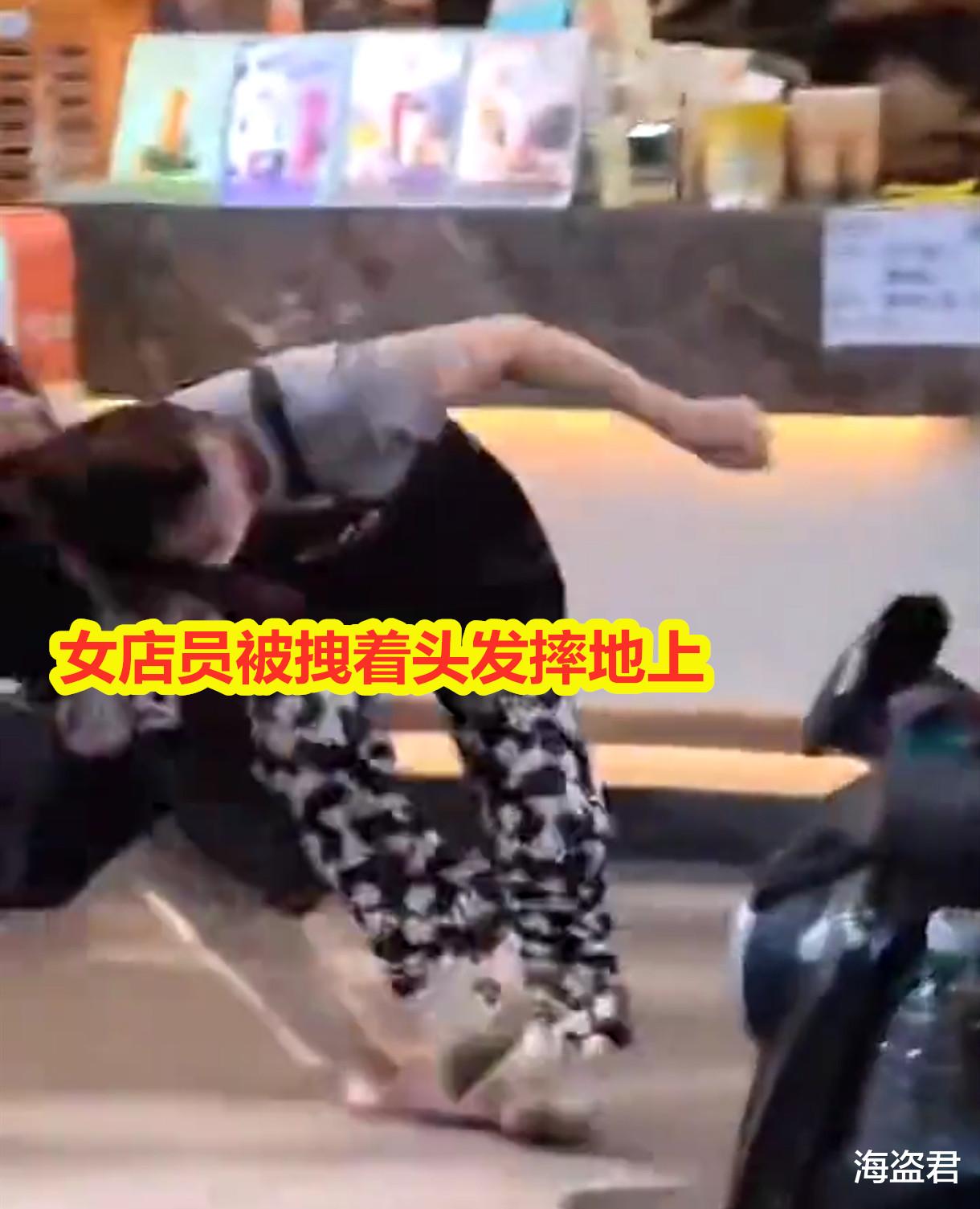 宝妈情绪激动,突然冲过来抓住女店员的头发,将她扯出来狠狠地摔在地上。