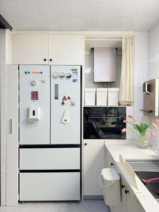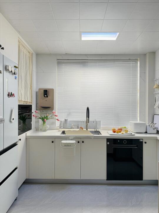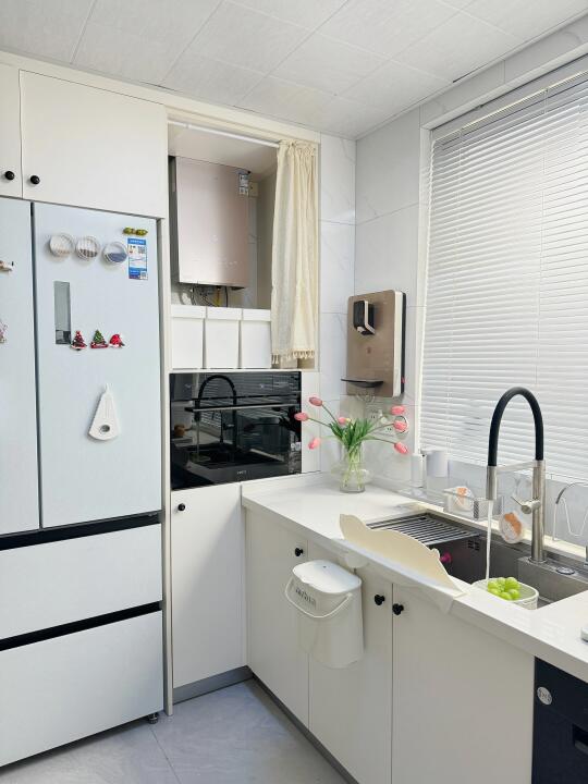▫厨房空间只有5平,所以做了白色的,简约又显大!