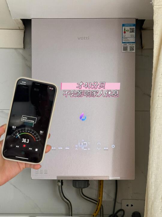 像队友常常加班晚归,他洗澡时机器开启也很静音,运行时声音才40分贝,跟安静的图书馆声音差不多,跟我家猫咪走路似的~深夜洗澡不会吵到我家小盆友睡觉~平时厨房浴室两边用水也不会起忽冷忽热,真的很提升幸福感!