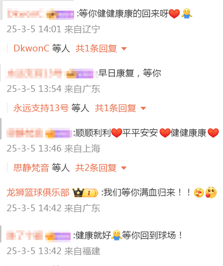 俱乐部以及网友纷纷留言表示,期待郭艾伦康复归来!
