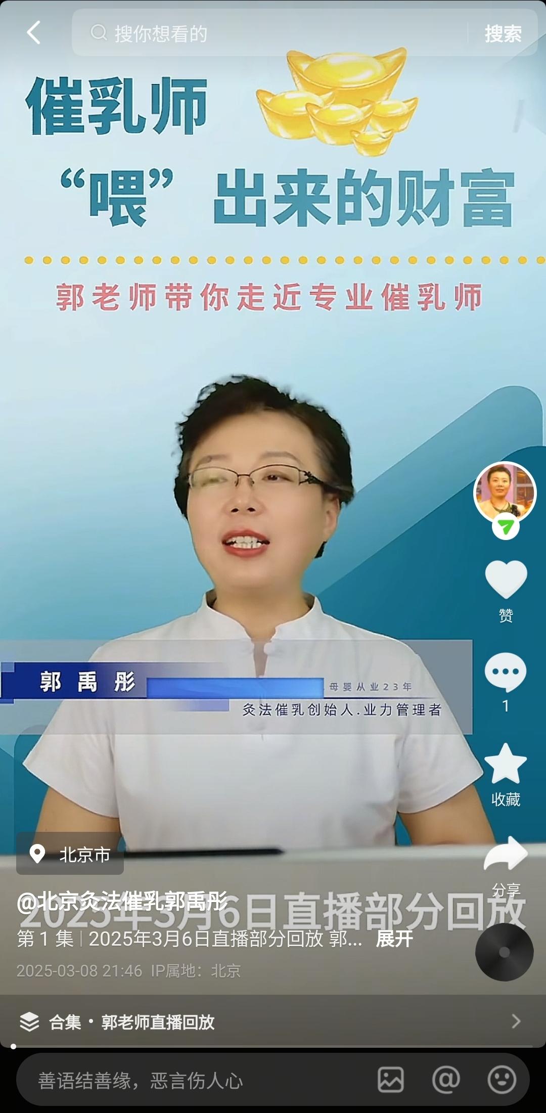 3月6日直播回放地址。女神们节日快乐❤❤❤今后直播回放简单剪辑后将在中放出,想对灸法催乳详细了解的同学可以赶不上直播可以在直播回放中学习,郭老师带你走近专业催乳师!