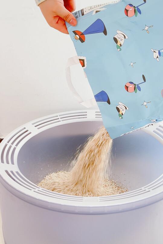 我想换猫砂,涂涂给我翻白眼了守护者他的猫砂,是我特别喜欢的一个碗的猫砂,不仅碗做的好看,猫砂做的也好用,自带香水,他们家是首推的香氛概念,味道是淡淡的,只有猫咪上厕所的时候才会散发出来味道,人宠友好,主要的成分是核桃壳,木薯,豌豆的混合砂,环保又安全,结团非常快,不黏底。
