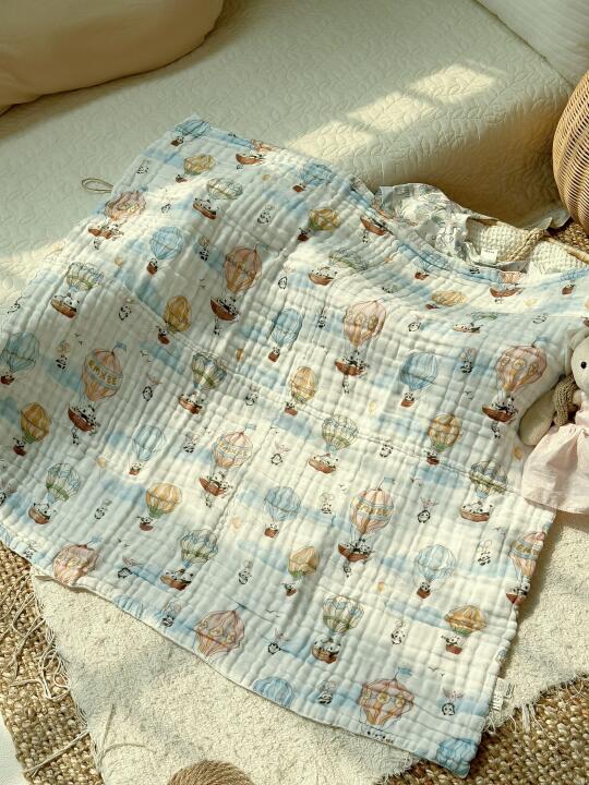 除了和袍,我还给宝宝准备了小奶酪蚕丝抱被、泡芙纱罗浴巾、小凉风艾深睡包单、果果口水巾和小袜子
