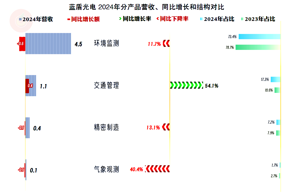 下跌的原因可能是:行业需求萎缩,政府或企业等环保投入阶段性放缓,环境监测设备采购量下降,2024年销量同比下跌1.82%,销售收入同比下跌11.7%。