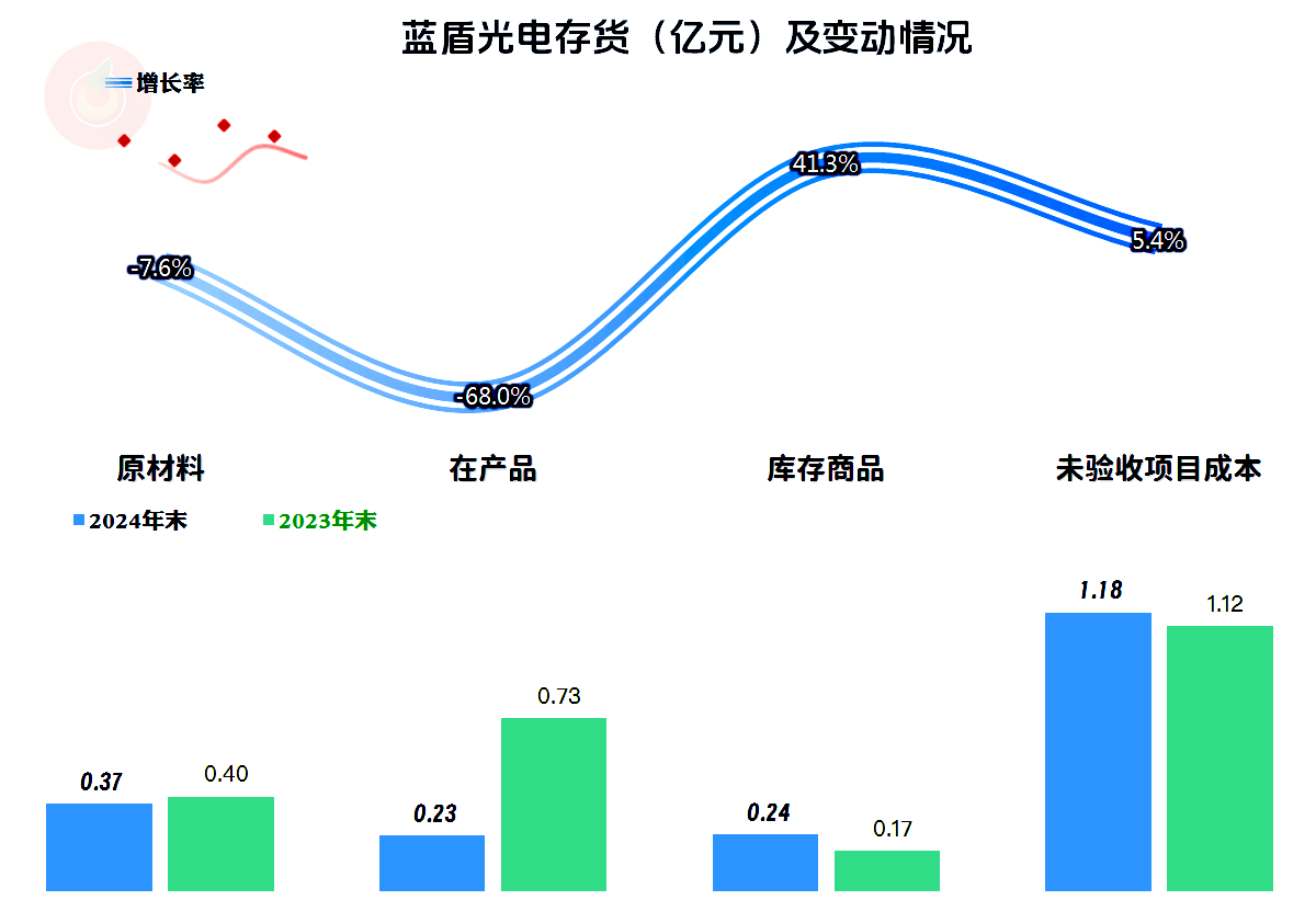在2024年末的存货中,占比58%,高达1.18亿元为“未验收项目成本”,比2023年末还有所增长。不太可能是项目太多而未验收,毕竟营收已经连续三年下跌了,更大的可能是这些项目的实施和验收周期变长,项目成本可能会因此增加,不可避免地存在减值风险。