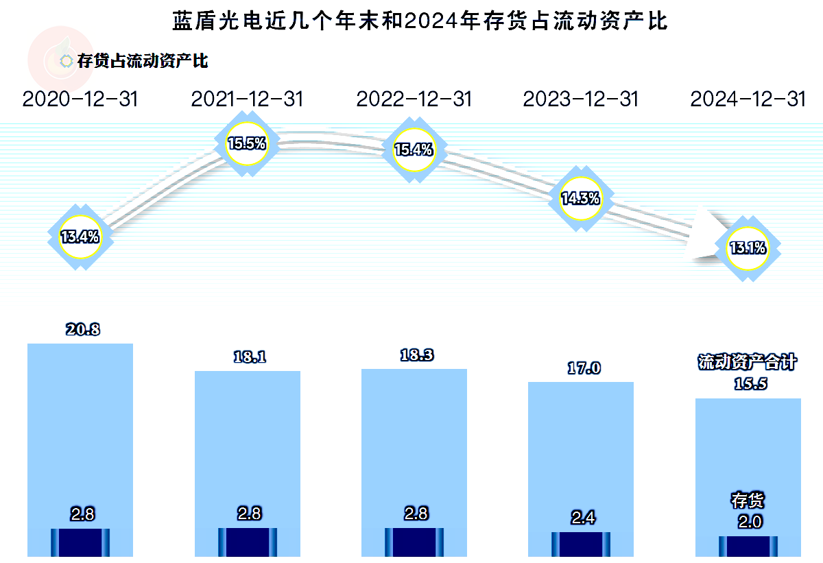 2024年末存货为2亿元,这是在2023年末下降后的继续下跌,降幅还比较大。结合着近年来的营收下跌,存货也随之下降是正常现象。