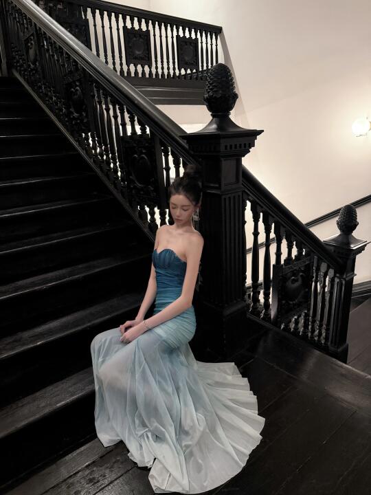 蓝色V领连衣裙简直是高端女神范儿的标配,商务场合穿它气场直接拉满!束腰让身材