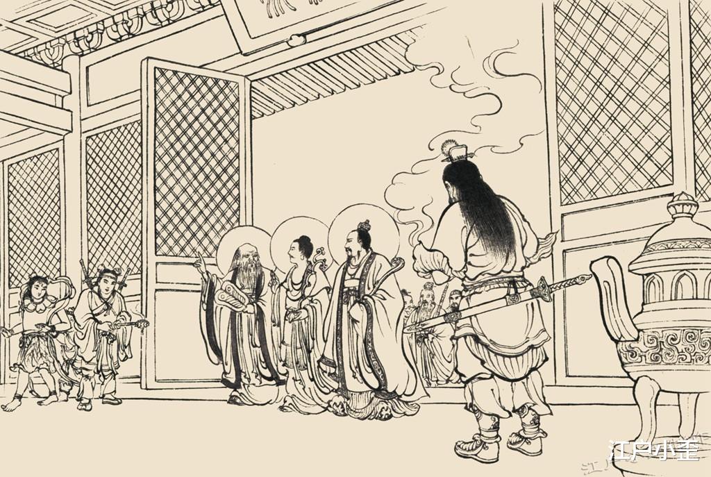 这时广成子传报,门外有西方来客,老君和元始心中有数,一同降阶相迎。