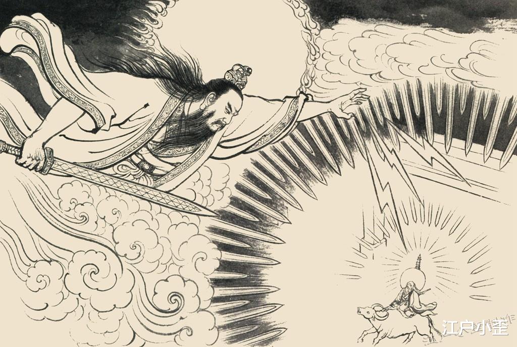 武王进军不得,自有仙人来为他撑腰。阐教的头头元始天尊从天而降,他坐着豪华座驾来到诛仙阵中游玩一番,毫发无伤。老子也随即来凑热闹,一气化三清,端地是神妙无方,揍了通天教主几下,还拿住了截教的多宝道人。登时,芦篷之上众阐教弟子欢声雷动,一片颂扬之声。
