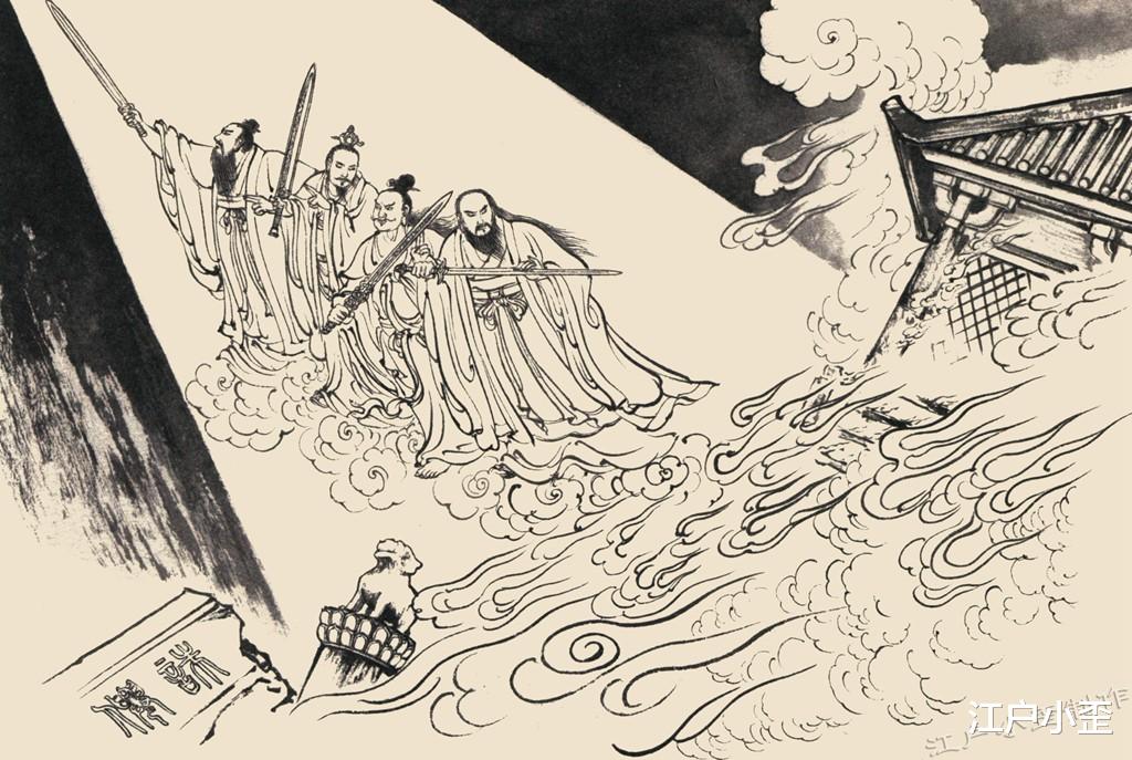 四圣早在阵内放起火来,一时红光惊天,广成子等几人杀散守门小兵,冲上四门,摘下四把宝剑。四剑已失,则诛仙剑阵就崩溃瓦解,截教门人一哄而散。