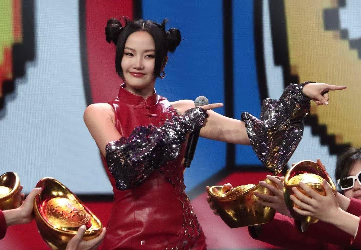 吴艳妮在成都穿着短裤大腿看起来很粗壮,表情自信又张扬