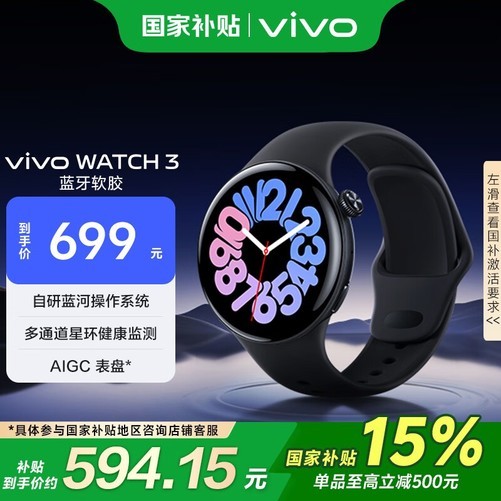 vivoWATCH3蓝牙版智能手表,采用46mm经典尺寸搭配辰夜黑软胶表带,时尚大气又舒适耐用。这款智能手表功能强大,可满足您日常健康管理与运动监测的多重需求。