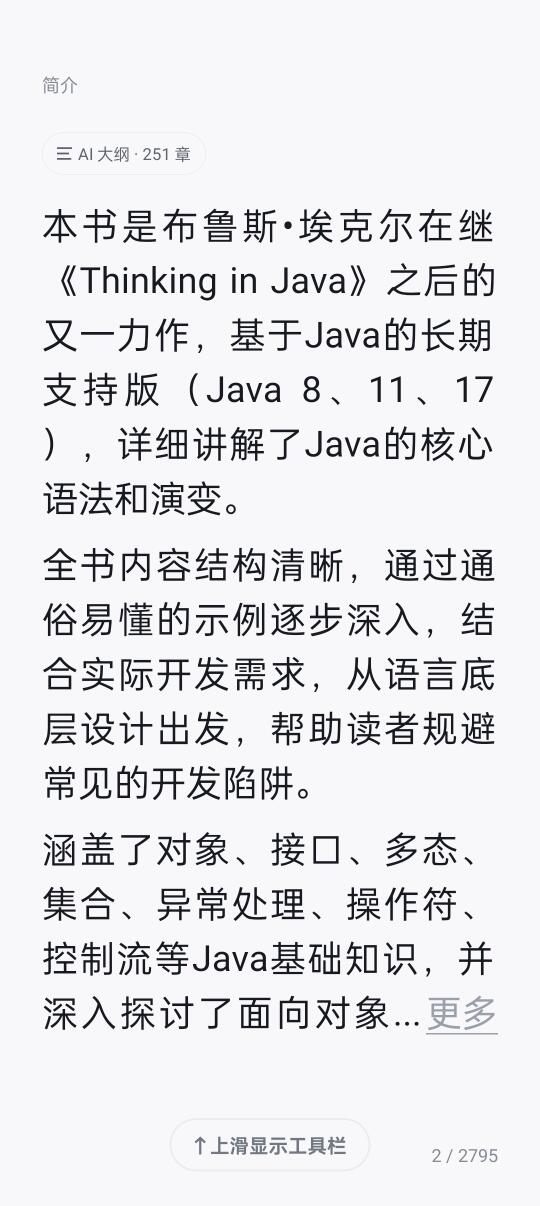 主体部分共 22 章,内容包含对象、操作符、控制流、初始化和清理、复用、多态、接口、 内部类、集合、函数式编程、流、异常、代码校验、文件、字符串、泛型等。