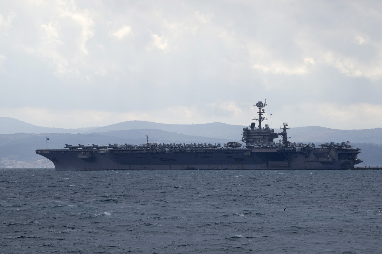 美国“哈里·杜鲁门”号航空母舰停泊在克罗地亚斯普利特附近(资料照片)新华社