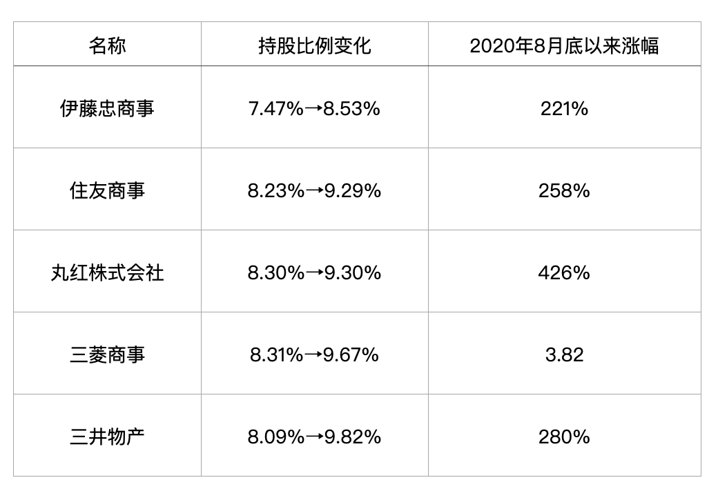 对伊藤忠商事的持股比例从7.47%升至8.53%;