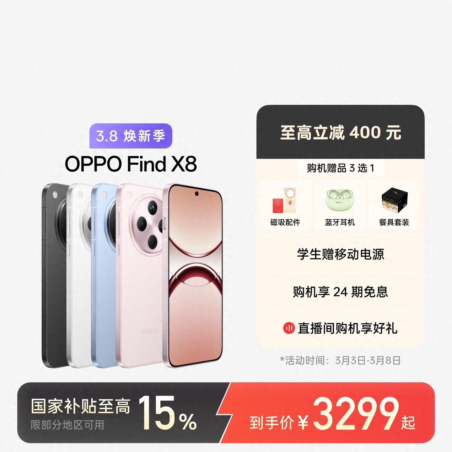 随着3月8日国际妇女节的临近,智能手机市场迎来了一波新的节日促销热潮,其中OPPO可以说是直接把诚意拉满!旗舰爆款OPPO Find X8 12+256GB版本限时再降200元,叠加国补后到手仅需3299元,迎来上市以来的最低价,堪称年度“真香旗舰”,也是入手的绝佳时机。