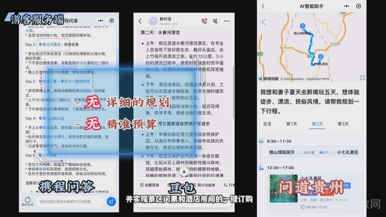 “在现有行程的基础上,如果我告诉它,‘我去过西江苗寨了’,那么它就会给我进行调整,根据我的需求完成交互。”贵州贵旅数网科技有限公司副总经理陈媛告诉记者。