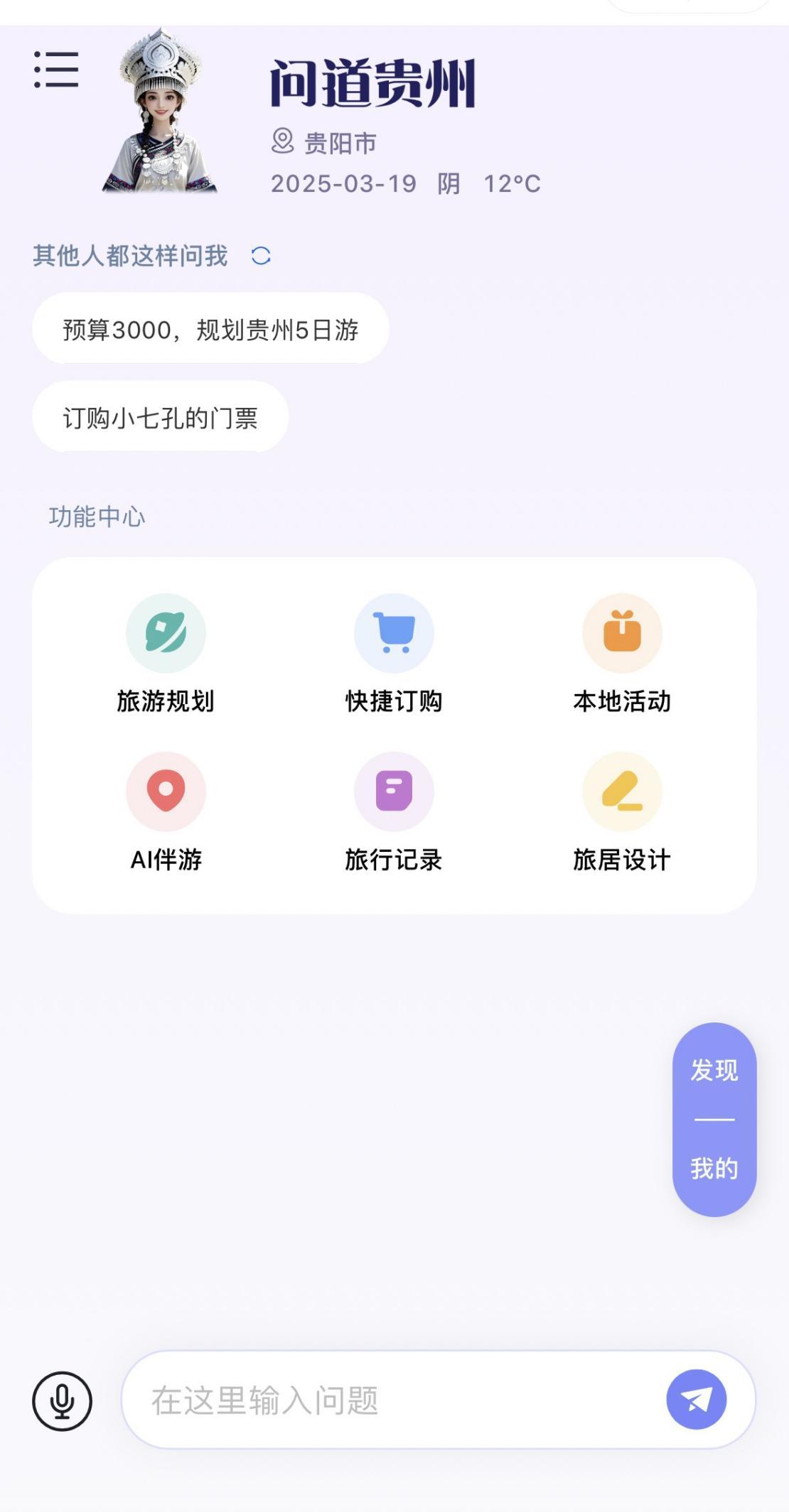 昨天(3月18日),由贵州省大数据发展管理局、贵州省文化和旅游厅指导开发的贵州省旅游服务智能体——“问道贵州”启动测试,该智能体可为游客提供智能推荐、景区导览伴游等6大服务。