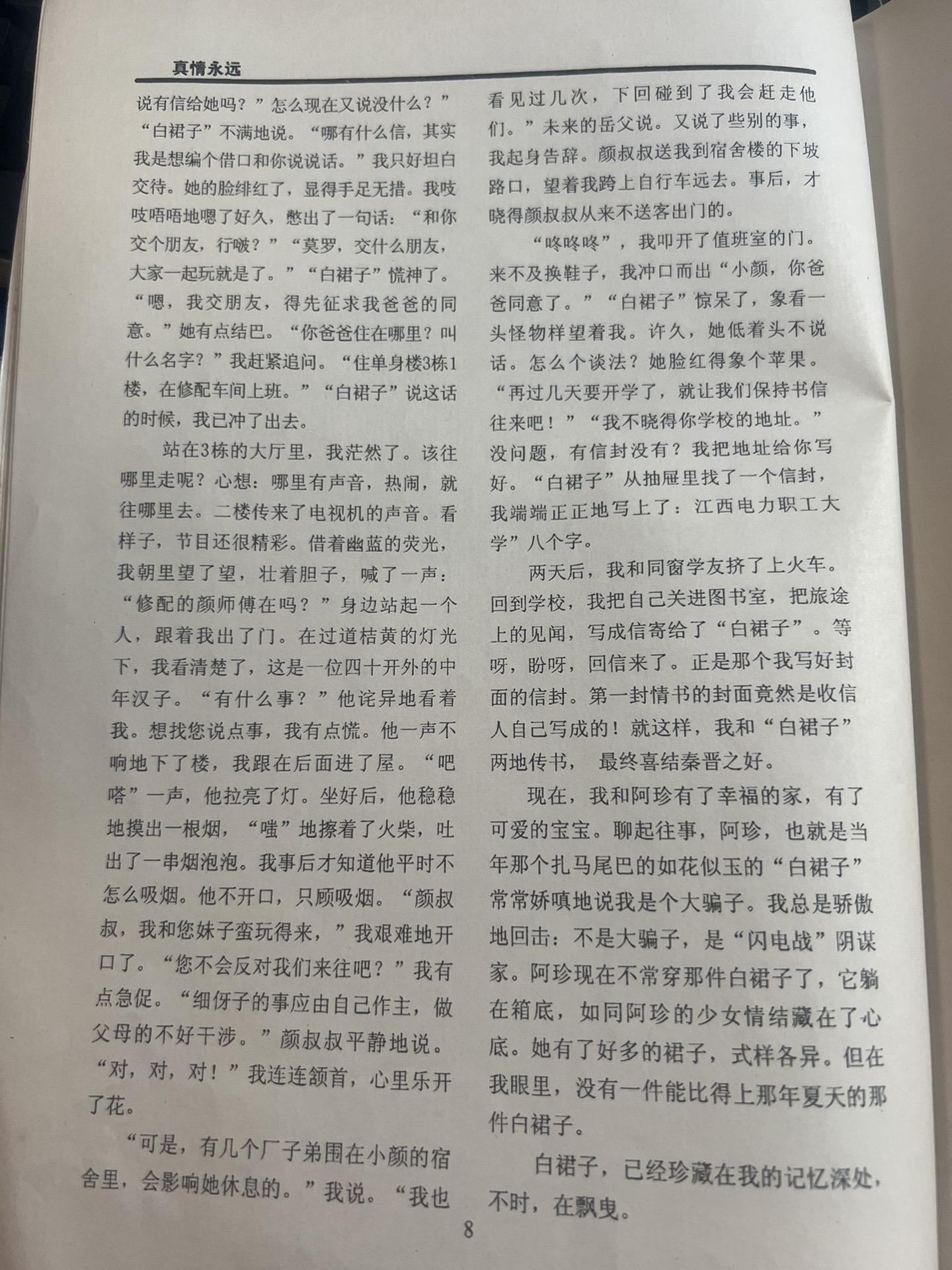 父亲曾为母亲写的散文《白裙子》。过去了30年,这依然是我想要的爱情。