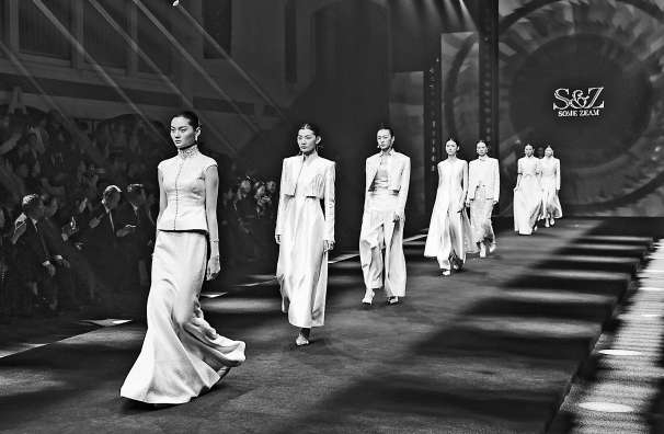 开幕盛典上,尚仄国际旗下高端定制女装品牌SOMEZEAM带来“仄起东方”主题大秀。苏绣隐线勾勒山水的细腻纹理,螺钿镶嵌营造出梦幻光影……模特身穿的定制女装,将东方韵味与西方剪裁融合,展现出时尚魅力的交汇融合。